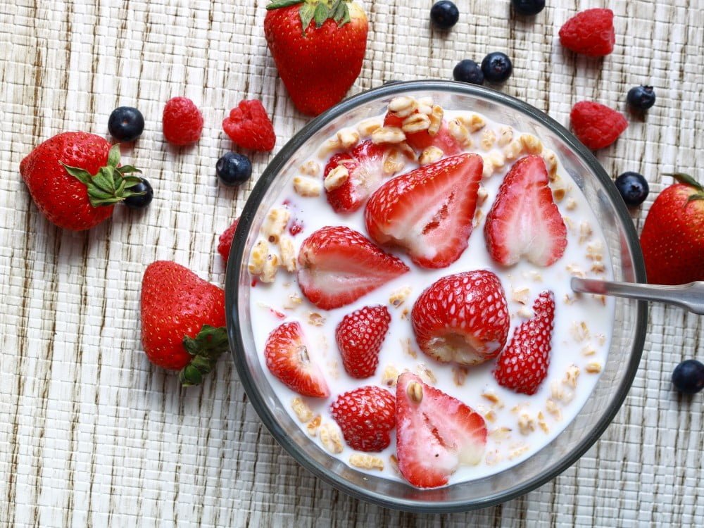 One sentence summary You do not need to starve yourself during weight loss. Thick yogurt, crunchy grains, and fresh strawberries together make a clean breakfast that keeps you going for four hours.